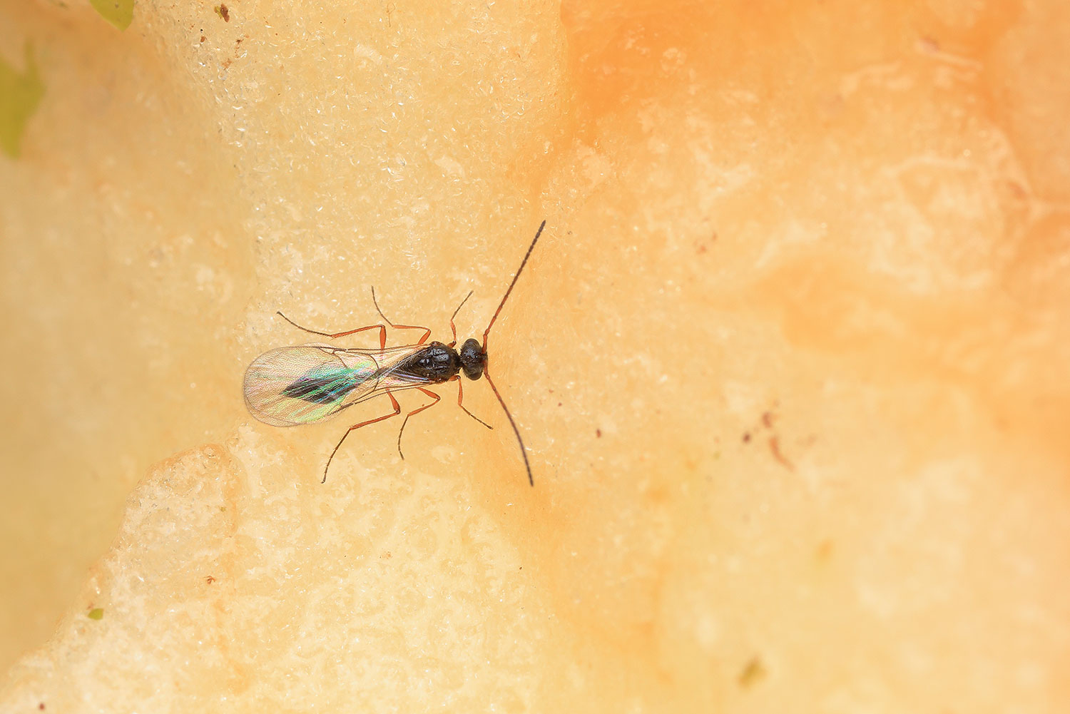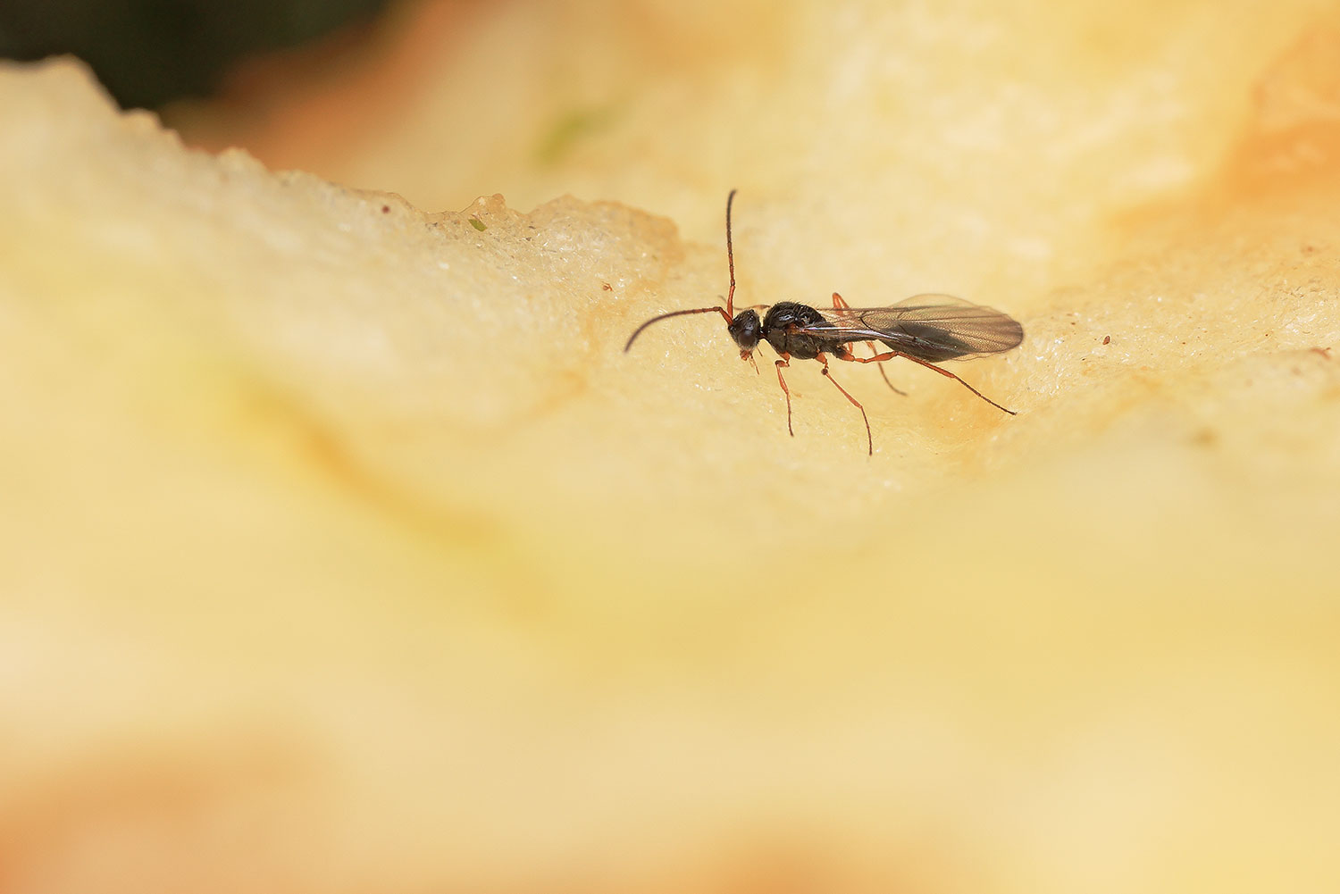 An even bigger surprise in the last days of November were two individuals, a male and a female, members of Hymenoptera. Due to the absence of any flowering plants, they probably tasted the same apple delicacy as members of the Dipterans. Apparently, it was a species belonging to the genus Aclista, about 3 mm in size.