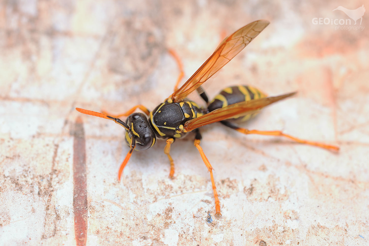 A truly unusual visitor, literally on the doorstep of my house, was an European paper wasp (Polistes dominula), which landed on the front door and flew away again.
